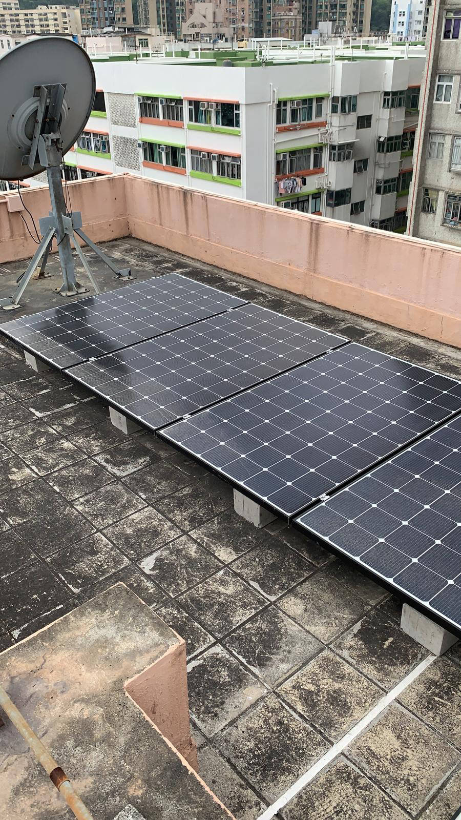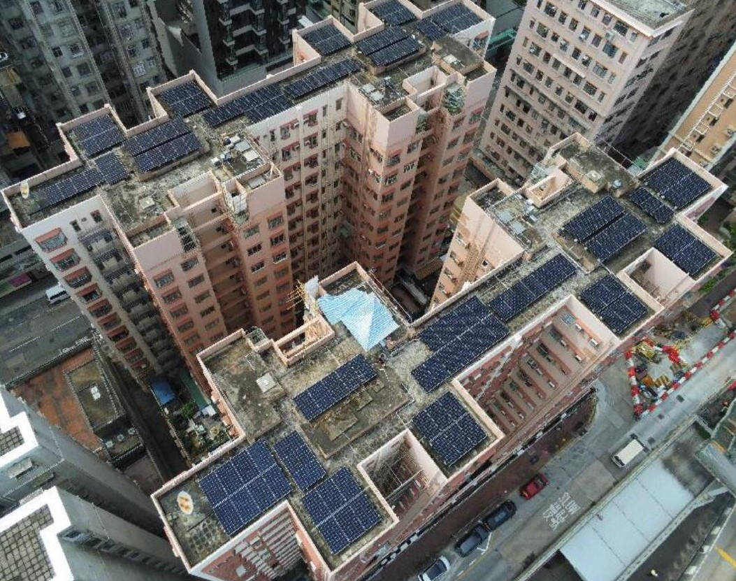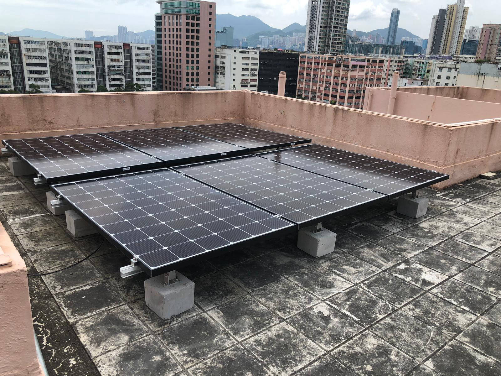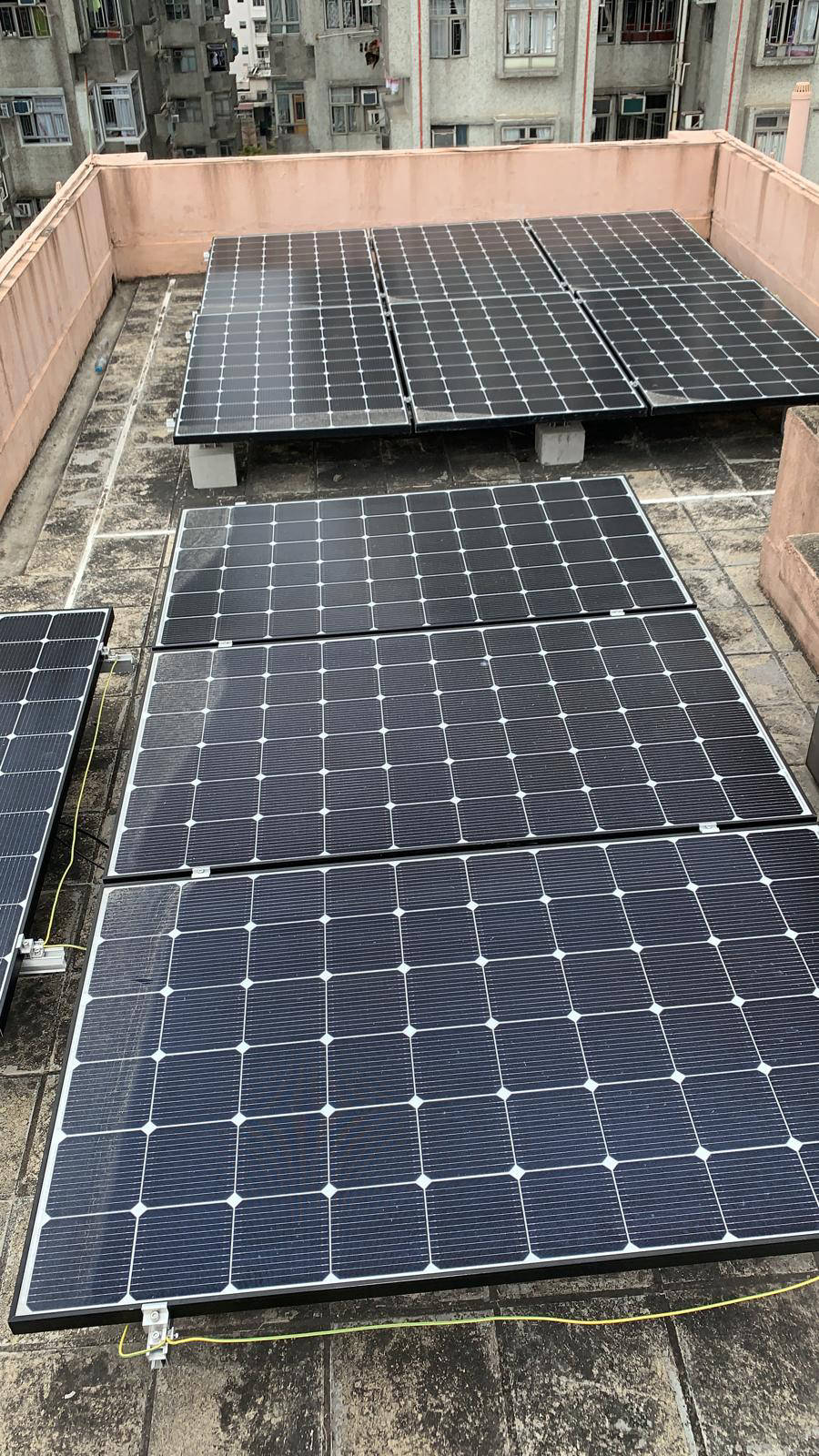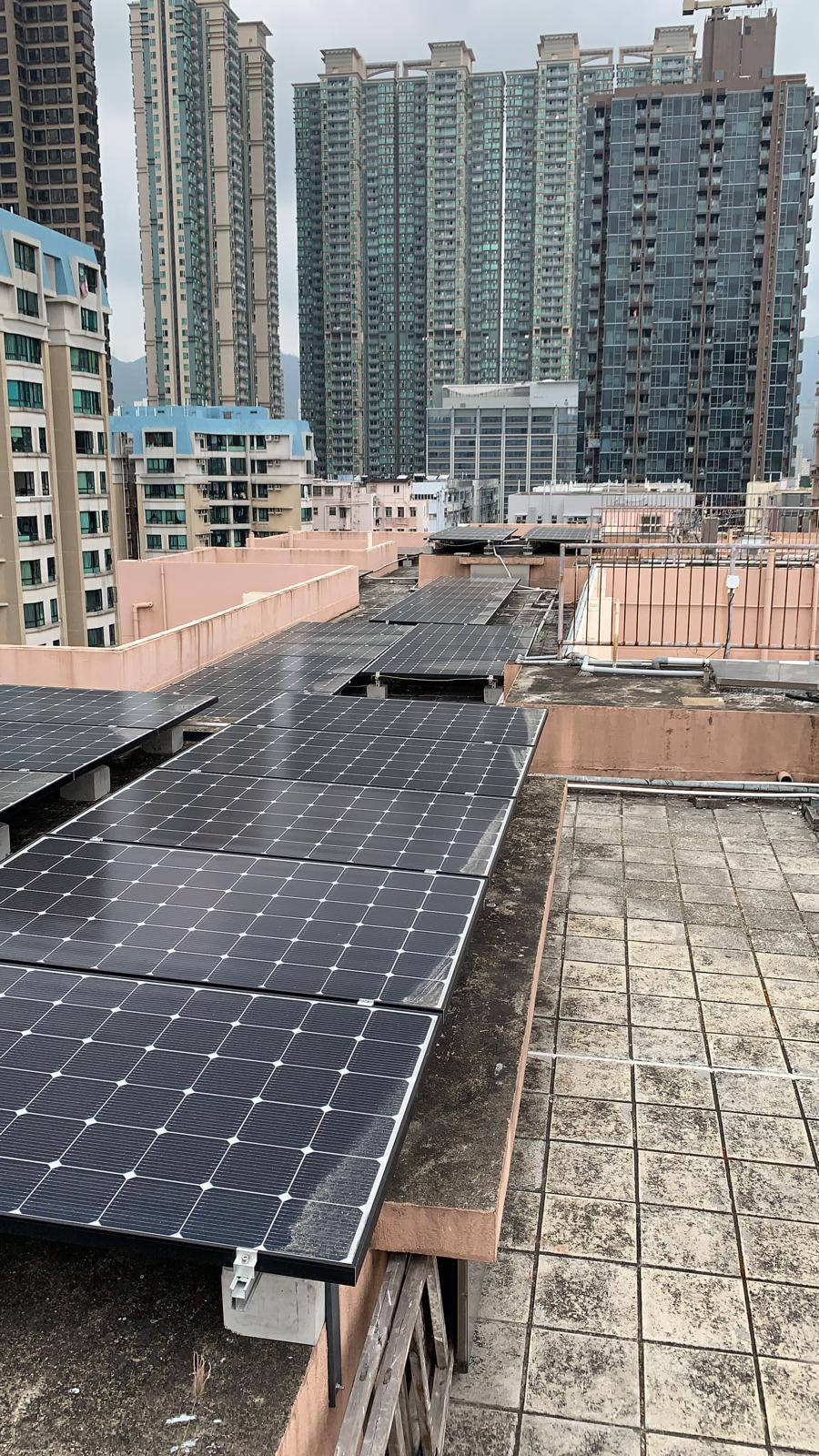 太陽能電池板分別安裝於本屋苑兩個天台上,由 Step High Limited 負責安裝及向中華電力申請及接駁,中華電力會購買由本屋苑的可再生能源系統所生產的電力,金額將按上網電價計算,所得收入將按年期比例與服務供應分成,法團所得收入妁撥歸法團賬戶。