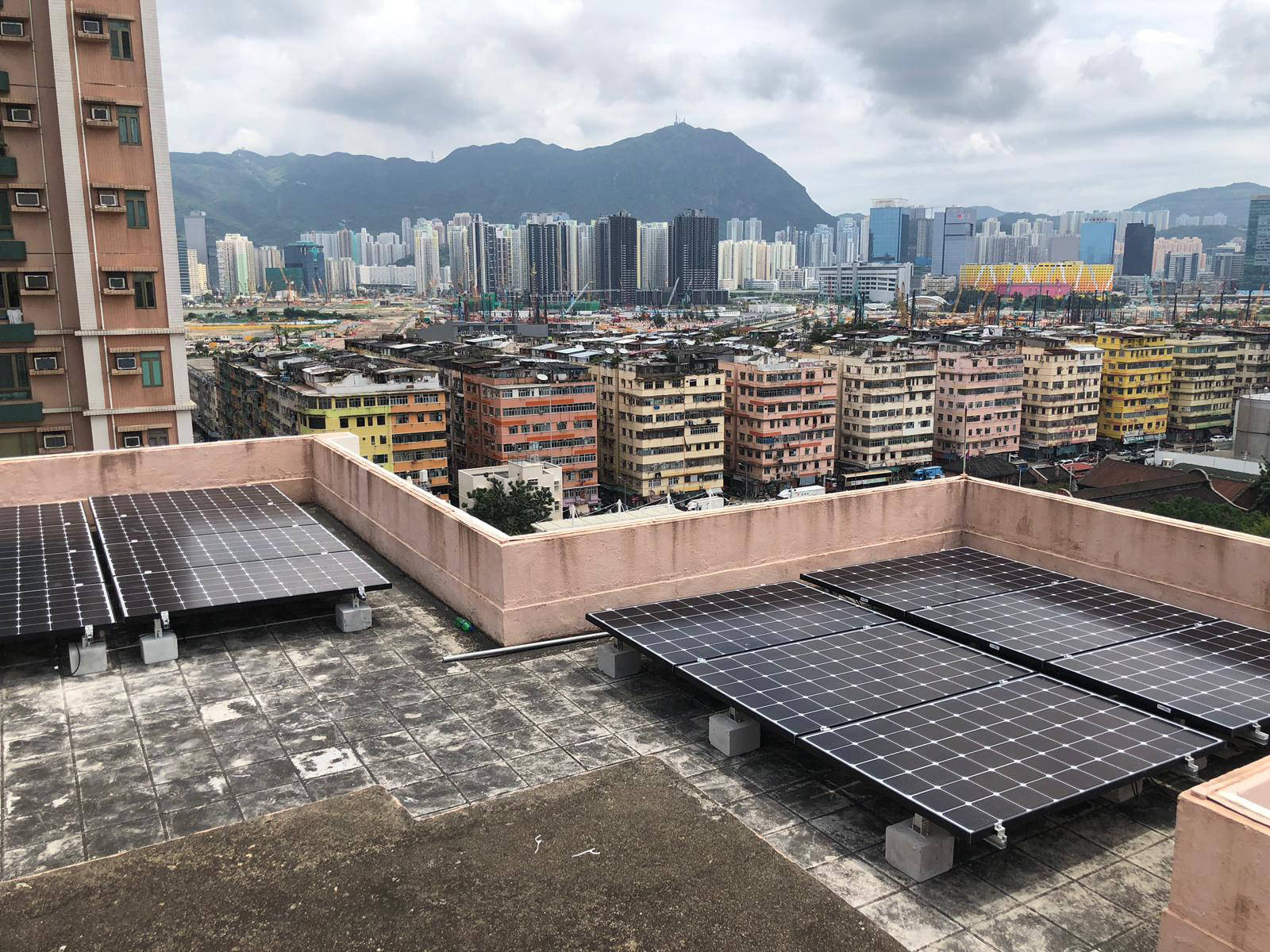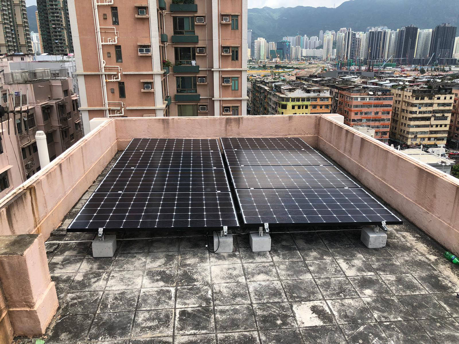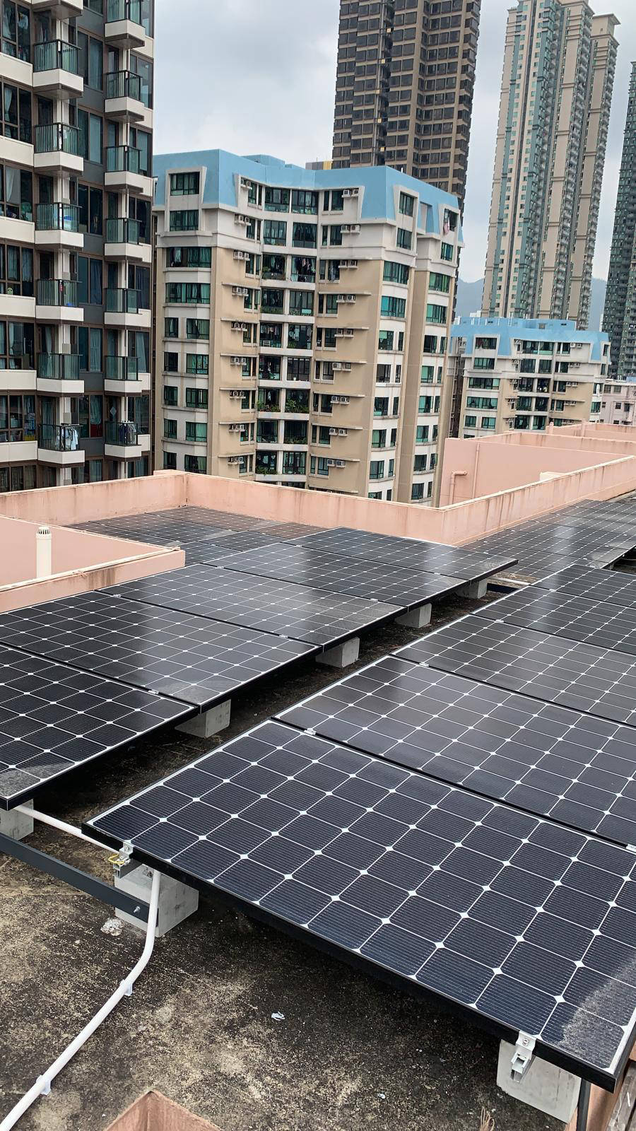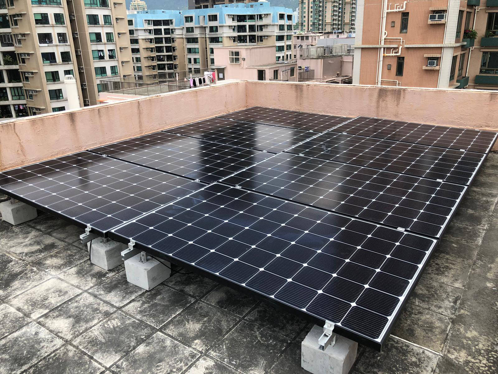太陽能電池板分別安裝於本屋苑兩個天台上,由 Step High Limited 負責安裝及向中華電力申請及接駁,中華電力會購買由本屋苑的可再生能源系統所生產的電力,金額將按上網電價計算,所得收入將按年期比例與服務供應分成,法團所得收入妁撥歸法團賬戶。